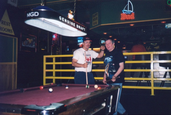 Here they are playing pool....they ended up tied one game each, so I guess they'll have to meet up again someday for a tie breaker. Hope I'm there to watch that one too.
