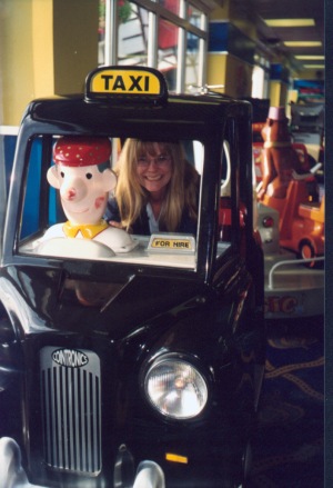 After getting back to Dymchurch, we went up to the pub for a drink and then took the kids (and Roger) to the fair they have there. Roger gambled and managed to win 3 little clay-type kitty cats...lol. I'll treasure them RP! The kids did a bit of gambling and then Roger and Clare, and James and I declared war on each other in the bumper cars (I can't remember what you call them over there)...lol. We had some fun and took some pictures and then headed off to get the fish and chips and mushy peas and go back to the bungalow to eat.
