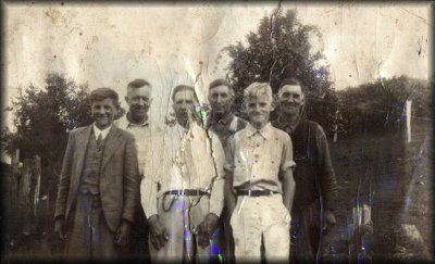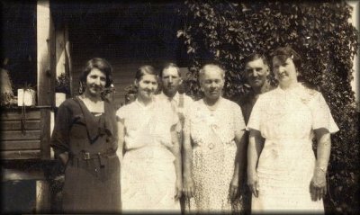 Left to right: Leona Elizabeth Cress, Fannie Rose Bell Cress, Charles Muncey Cress, Sarah (Indy) Cynthia India Cress, (possibly) Robert Seymore Cress, and Celia Evelyn Cress.