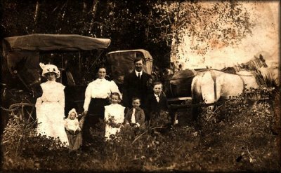 Wiley J. Cress and Family after a trip to the 4th of July Fair. This picture was sent to me by my new found cousin, Patty Brunner. The postcard was sent to Wiley's sister Fannie Rose Bell Cress with a note on the back "had a fine time at the 4th July fair".