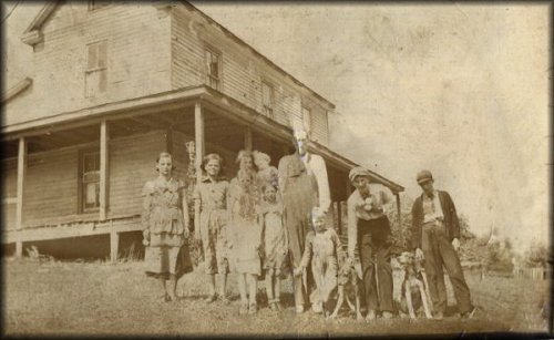Left to right: Bessie and Ethel Reed (neighbors), Leona Elizabeth Cress Porter holding Janett Marie Porter with Dorothy Lee Porter in front and Agnes Elizabeth Porter next to her, Andrew(Andy) Orville Porter with Joseph Blaine Porter in front of him, Samuel Wilkins Porter and James Edgar (Edd) Porter.