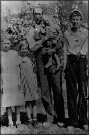 Left to right: Dorothey Lee Porter, Agnes Elizabeth Porter, Andrew (Andy) Orville Porter holding Janett Marie Porter, and Samuel Wilkins Porter.