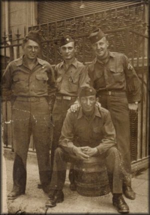 Earl Franklin Price sitting with three buddies standing behind.