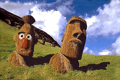 A monolith found on the edge of Easter Island known to the natives as "The One that Devours" or "The Evil One" has been found to have an uncanny resemblance to Bert, This image was sent in by Wout O Matic. He allegedly took the image during his last holiday. This photo is further proof of Bert's evil dating back to the dawn of civilization.