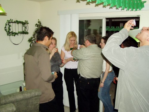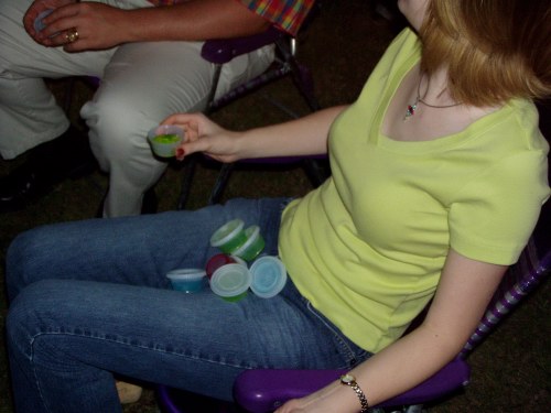 ![]() Julia, the lush... Trying to get Joel to go down for a Jell-O shot!!!