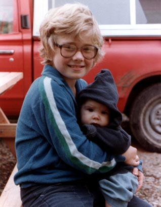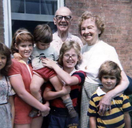 Rachel and Donald on the fron porch. Late summer, 1980. |