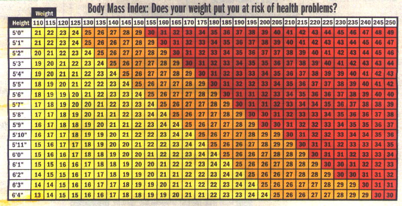 in USA Weekend, will calculate your BODY MASS INDEX. The shaded areas also