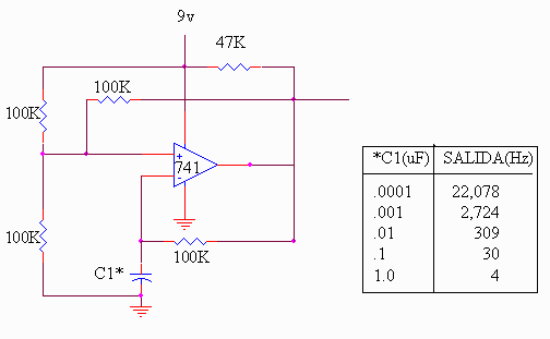 Básicamente este circuito es un comparador de voltaje entre las entradas + y -, es decir cuando el voltaje del condensador C1 entrada - supera el valor dado por el divisor de voltaje a la entrada +, la salida cambia su valor a un nivel bajo y el condensador empieza a descargarse hasta que tenga un valor menor al de la entrada + es entonces cuando el comparador conmuta su salida y el condensador vuelve a cargarse y se repite el proceso.