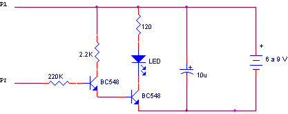 Los puntos P1 y P2 son las puntas de prieba para los circuitos.
