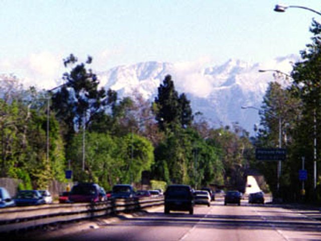 A picture taken while driving into Pasadena one day. These are the mountains above LA and they have snow!