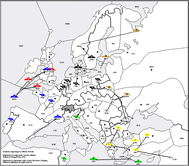 F(Swe) - Nwy (FAILED); F(Den) - BAL (FAILED); A(Kie) - Den (FAILED);