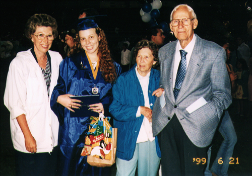Malia, Meg, Kim, Bob, MEE at Graduation, June 1999.