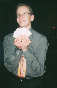My Ex, George, with his *pick up line cards. hehe... 1998 i think.