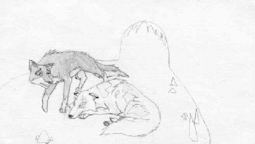Jan approached him and nuzzled his neck. Kemo turned towards her and smiled. She was his lifeline. He didn't know how he'd survive without her love to keep him going. They were unseperable, a bonded pair for life. Kemo would definitely give his life for her, something he had almost done when they were in danger from an old grizzly bear that was wandering around, but the rest of the pack arrived just in time and drove the bear away.