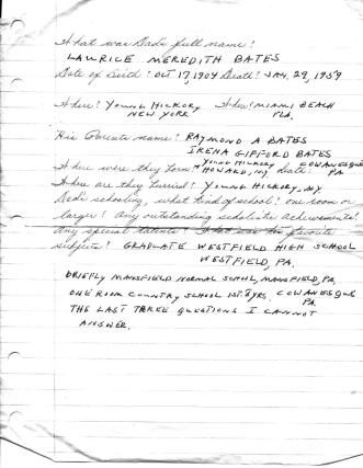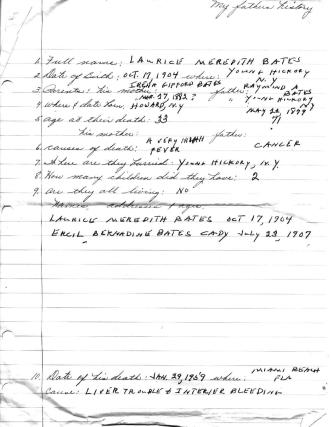 Flordia. leaving a sister Ercil Bernadine (Bates) Cady b. July 23, 1907.