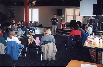 David Martinelli, present Campus Crusade Campus Director, sharing exciting things about the present CCC Ministry. We met at the "Cru" the outreach center for CCC. It was the old Trito's Bar.