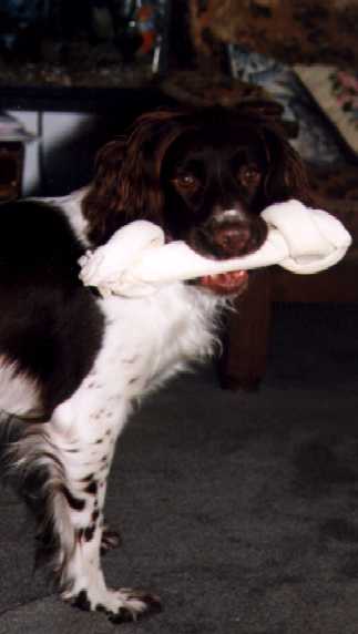 Isn't he the cutest? I love it, whenever I come home he sleeps in my bed. I LOVE MY DOG!!!