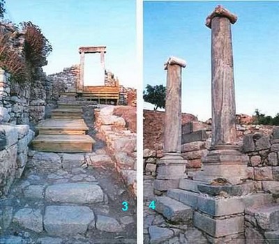 Photo4: Down on the side of the same sacred road is located a building called 'Villa'. The monumental entrance of the building recently restored and a missing column header is copied from the original, with the help of the mold. |