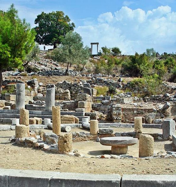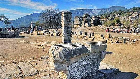 Palaestra Terrace & GIMNASIUM : The flat area lying between the Measurement Platform and the Roman Bath conceals the earlier settlement layers which date from the Late Archaic period onwards. The most important among these earlier structures is a sacred precinct. The remains of its terrace walls, which were repaired several times, were discovered in the soundings excavations made around the church.The well, in front of the remains of the northwestern terrace wall and the remains of a wall found at the lowest level of the excavation suggest that this terrace area was widened and completely developed by 600 BC. A street paved with cobblestones, which was found at a quite level to the north of the area, ascends from east to west. This street, which was certainly constructed by the end of 3rd century BC, connected the city center to the ancient cemetery, including the rock-tombs. This street lost its function around 100 AD; the area was filled to make a terrace. In the east of the bath a sports school (Palestra), from the Roman period, extends towards the church. There were schools in each city to prepare young people for life and war. Military education and culture was conducted always together. Undoubtedly, athletic competitions, training and practice in wrestling and other athletics were held here. The Palestra that covers a large area is not available today. |