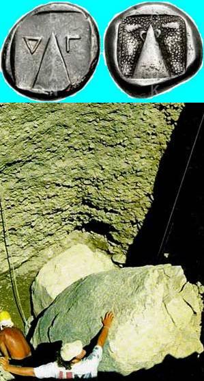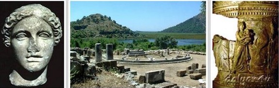 Around the base of the rock, they found waste of ashes, animal bones, pottery fragments and a large number of colored stones. Those are evidence that this rock was a symbol of a god. It was realized that the black ceramics dated by the IV. or -V. century BC. When the sacred stone was completely covered with earth the new temples are built on it. But each time, the altar has occurred almost on the sacred stone. The Baitylos, which was the symbol of the city, represented on the coins of Caunus until the middle of the Classical Period, is a non-figurative representation of Basileus Kaunios, the god-king of Caunus. This stone had great significance in the religious life of the Caunians and this sacred stone was the underlying reason for the successive constructions on this spot: of the round structure, of the temple and even of the Christian church built upon this terrace. |