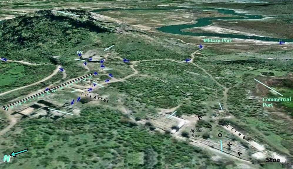 Photo3: The artery of the east-west connecting the terrace of Palestra, the agora of the port. This paved street is sacred and at the beginning of landing a monumental gate has been restored.