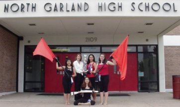 | Definition of a Flag Girl | Welcome to the website of the award-winning North Garland High School Colorguard. A flag girl is defined as one who moves, leaps, stretches, kicks, and turns while sweating, goaning, moaning, panting, and complaining. Accompanied by music...we definately do a lot of that! | ||||||||||||