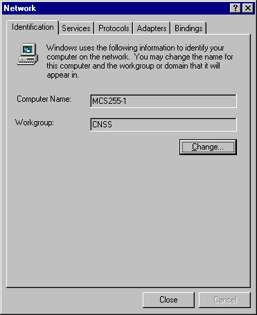 - Click on the Change button and enter the computer name of the workstation. I suggest you use the