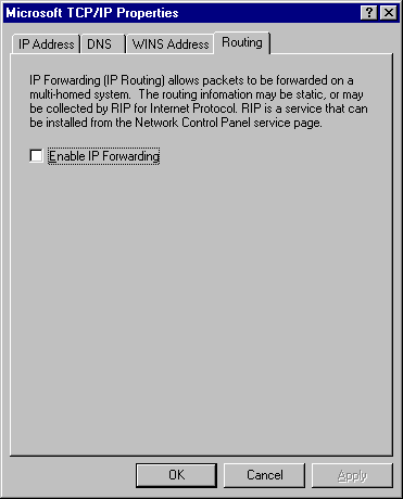 - The enable IP forwarding should be left UNchecked. Finally click on ok and restart you computer.