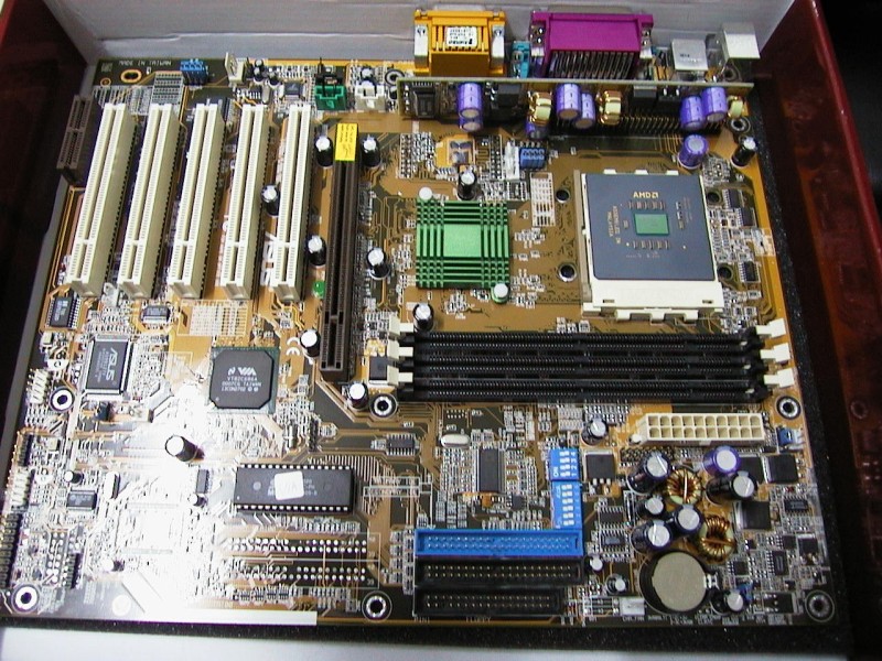 08/07/2000...... The main difference between an ASUS K7V and K7V-T is Asus soldered resistors to back of motherboard. The put these resistors where CPU plugs in. By doing this they have changed the timing required to run Tbird CPU's. I have tested this m/b with 700 thru 1000 mhz cpus and have found all to be 100 percent stable. The only draw back I had with this m/b is geting windows to load on first attempt. It seems that you need to get the VIA agp 4.03 driver package in it to solve mouse freezes and windows lock ups. I have also had trouble running the official K7V-T bioses. The boards I have seem to run better with the original k7v bioses. At this time I have yet to install final 1007t bios. Plan to do that later today. Since I hate long article that seem to cover the same info about each m/b I will just be giving you my overall impression and reliablity of this m/b. Once you finally get windows in and find proper bios this board is as smooth as they come. I had originally imported this board to test and sell but since i have been using it the last 2 weeks I have been impressed with the overall performance and the lack of headaches that so many boards seem to have. If your looking for a very good motherboard to run your slot A tbirds look no further, your prayers have been answered by Asus. I am currently running 750 cpu that has 900 core with tweaking device 2 attached. Have multiplier set to 10.0x and core votlts at 1.85. I also have FSB running at 105 and memory running at 133mhz. My only complaint is when you increase front side bus it also increases memory clock. Example 105 fsb give you memory clock of 138 if your running memory at pc133. So this tends to limit how high you can raise FSB without lookups. I wish Asus would give you the seperate option that Abit gives us by lettting you only raise FSB without increasing PCI or memory clock. Overall anyone that buys this motherboard to solve the Slot A tbird troubles will be very pleased. They will have bought themselves a very nice motherboard with room to grow. Here is the Latest Final Bios for the K7V-T M/B. This is not a beta Bios!!!! | |||||||||||||||||