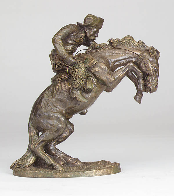 "Bronco Buster" sculpture from the Liberty Bronze Collection. Stands 9 3/4" x 4 3/4" x 9 3/4" high.