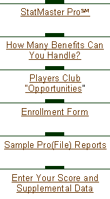 maximize your scoring potential. StatMaster Pro can take you to that next level and beyond! You can receive your reports via E-mail, snail mail, fax, or you