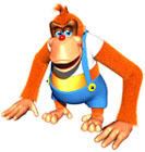 Lanky Kong Coming to join the DK Crew from a distant branch of the family, Lanky's something of a wildcard - a gangly, loping orang-utan whose long arms work particularly well in the Krem-bashing department (though he can also stand and run on his hands if necessary). Another peculiar trick involves floating some distance into the air by puffing himself up like a balloon - odd, but useful, just like old Lanky himself