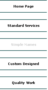 Simple Names: Or we can digitized a special font. Simple names would be use fore uniforms or sports coats and much more |