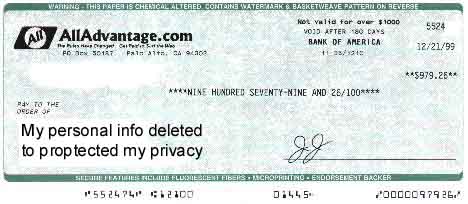 © 1999-2000. I am not affiliated with AllAdvantage in anyway except as a regular member. I am not a spokesperson of AllAdvantage and all the information I give is based on my personal experience and should not be construed as official statements of AllAdvantage.
