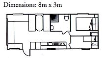 Atlantic Chalet (Sleeps six) These traditional chalets offer very roomy accommodation, particularly for families of four as this eliminates making a bed in the dining area. With cooker and fridge, hot/cold shower, flush loo and two separate bedrooms, these chalets represent excellent value. Dimensions: 8m x 3.5m Layouts Vary ~ A large master bedroom ~ Bunk room ~ Dinette seats convert to a double bed ~ Shower/flush toilet ~ Veranda |