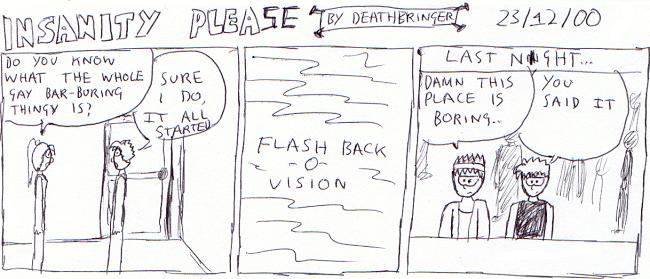 Verdammit!-this storylines turning out shit huh?-i'll finish it tommorrow-have the christmas 'special' then carry on with another storyline,i will come back to 'The 28th reich' sometime though-with a more sexuality-oppressioney-anarchyey type story (that i'll have to think up)-anyway,notice im using proper comic frames now,insteda lines that make it look confusing and dumb (like it isnt anyway)