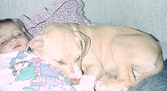Head's up! As of 11-11-03, this site is under reconstruction! Very sorry for the inconvenience, but if you have tried to contact us on the email link we have NOT received your email. Due to ISP problems, this site has been unavailable to us for several months; but your submissions are still appreciated and we apologize to those who wrote and went unanswered. Please bear with us as we continue to build this site. This will be an ongoing project, and all submissions are welcome. If you have a true story to relate, or a heartwarming tale of these dogs' heroism, courage, or humor, please feel free to submit them to the email address provided. This site will serve as a resource for positive input on the everyday lives of Staffordshire Terriers, Bull Terriers, American Pit Bull Terriers, Staffordshire Bull Terriers, American Bulldogs, and any other breeds who have faced the firing line in this era of hysteria and innuendo. We seek to redress the balance of false allegations that have placed our beloved dogs in grave danger.