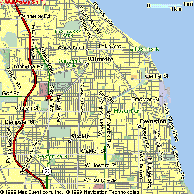 The map below gives you an idea of where you are once you get onto 94 West (Edens Expressway). 94 West is the bold Red road and the star is the Doubletree Hotel. Click on the map and it will take you to an interactive Yahoo! map that you allows you to zoom in/zoom out, get directions, find other places of interest in the area, etc.