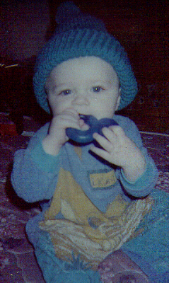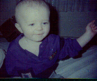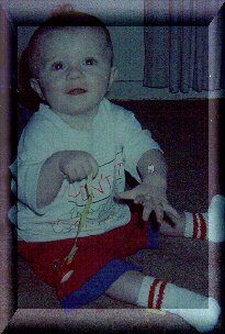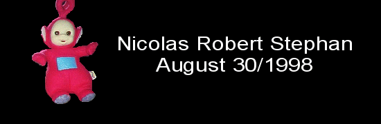 Well let's see,Nicolas is now 8 mths old .Has been sitting up since he was 4 mths old.Started baby foods at 4 months old pablum at 2 months.Has been crawling since one week before he turned 6 months old.Started walking holding onto furniture since he was a week from being 7 months old.Attends ACCESS on Tuesdays and Wednesdays until he i 18 months or sooner or later all depends on my lil guy :).He eats just about everything you give him except um applesauce.Unless it is mixed with something forget it.Loves Teletubbies and any cartoons haha.Loves cuddles and hugs.Says MA MA,BA BA and DA DA recently.Crawls after his older brothers all the time.He loves to play with everything,He has 6 teeth now has been teething since he was 2 months old ouch!He loves to push walk my older son's Austins little car around its so cute to watch.Loves hugs and cuddles from Mom and Dad and all of Mom and Dad's friends.Isabelle my friend Adriens daughter kissed him in the swimming pool lol.Well he is walking and babbling all the time.He also loves to watch Pokemon and Blues Clues but also loves the movie The Mask and also loves to Watch a BUGS LIFe over and over and over again lol nuts huh?Also he loves to take long walks and he loves the band AQUA and B*Witched!@Absolutly loves the song Cie La Vie by B*Witched I swear I have the music video on my computer he wants it all the time its nuts I have the cd too when I play that he looks directly to the computer lol.He is going back to Access this week as he had gotten two colds and that flu so far this season.Nuts huh?