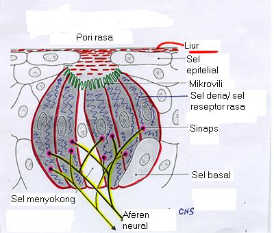 Tugas utama sel-sel reseptor ialah mengiukat molekul-molekul rasa dan memulakan proses-proses primer deria. Tugas utama sel-sel basal ialah memperbaharui sel-sel rasa.