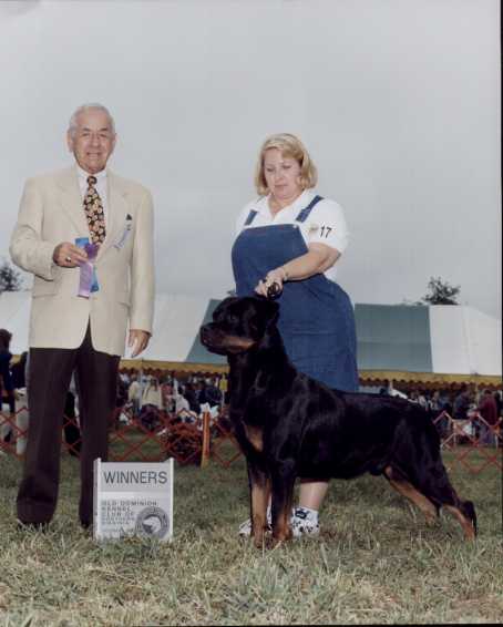 This Website is best viewed in "Microsoft Internet Explorer" Rottweilers are the most loving and loyal breed of dog. They are wonderful companions and family dogs. Rottweilers do however need owners who are very firm yet affectionate, once a Rottweiler loves you, he loves forever. Rottweilers do best as housedogs, having close contact with family members. He will follow you from room to room just to be near you, and if you will allow it, will be your shower partner and bed warmer. Obedience training is a must, for this dog will grow to 100 pounds in his first year. You will never be unloved if you have a Rottweiler as a companion.