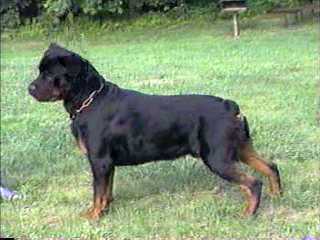 Thank you Peggy Powell for this gorgeous boy!!! Kari and I have big plans for this guy who is a litter-mate to our dear Marki. Intelligent, super sweet, stable loving disposition with kids and adults alike and yet protective too, he has the ideal Rottweiler temperament. Hugo is bred by Johanne Briere of "Briere Rottweilers." His mom is "CAN CH.BRIERE EXCLUSIVE" and his dad is German Import "CHICO VOM OBERPFALZER TOR BH" owned by the great breeder, judge, Joe Hedl. Take a look at Hugo's impressive pedigree. Watch for him in the conformation, obedience, and Schutzhund rings.
