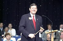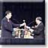 En la sesión plenaria del viernes, Bárbara Hendricks recibió el Premio Humanitario de Lions Clubs International, dotado de una subvención LCIF de 200.000 dólares. El presidente saliente, Dr. Jean Béhar, toma el juramento de J. Frank Moore III, presidente internacional del ejercicio 2001-2002. En su discurso inaugural, el nuevo presidente habló sobre su programa internacional, titulado "Ilumina el camino". |