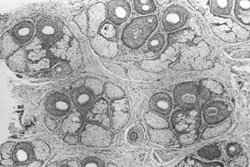 | Follicular Units seen under densitometry | | A histologic cross-section of FU's within the dermis |