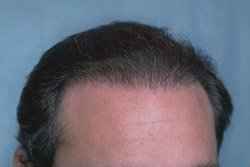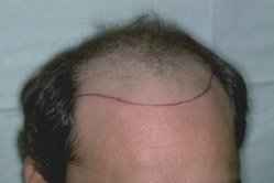 | A Norwood class 6 patient with position of new hairline marked just prior to surgery | Results after 2 sessions of Follicular Unit transplantation. Note the natural hair line. |