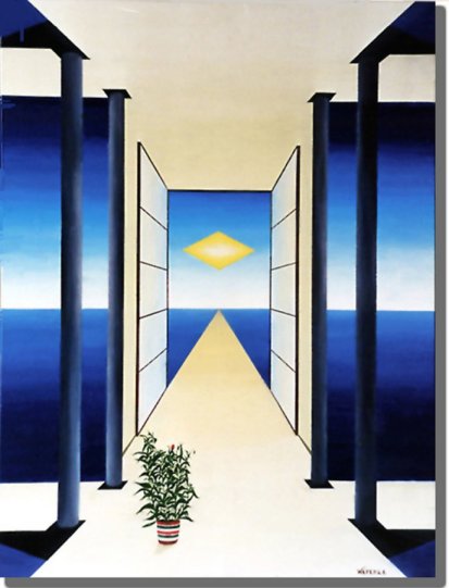 ......13. La fenêtre, ......Huile sur toile, 73 x 54 cm ......mars 1998. ......."Le tableau reste une fenêtre ouverte ayant pour .....effet, de dissimuler la discontinuité de l'espace". |