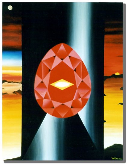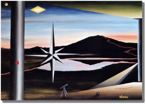 12. Le poteau ventriculaire, .Huile sur toile, 73 x 54 cm .avril 1998. ."Si en réalité le monde n'est qu'apparence, la .réalité véritable est au contraire cette forçe .inconnue cachée derriere cette apparence". |
