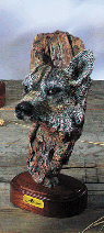 Where some might see only a fallen tree limb, the artist finds the head of a noble timber wolf. Wood base. 6 1/2" x 7 1/2" x 11" high. $74.95