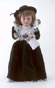 "Claire." This young lady in her elegant lace and deep green velveteen is also a musical doll with movement! She'll bring you holiday cheer with the tunes, "Jingle Bells," "We Wish You A Merry Christmas," and "Santa Claus Is Coming To Town." 16" tall. $42.95