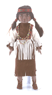 "Pocahontas." She's a Native American porcelain beauty, in a fringed "buckskin" dress, that's been brightly decorated with ribbon. 16" tall. $29.95